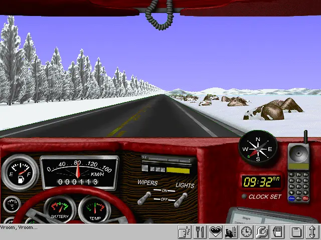 • Вождение происходит от первого лица в псевдотрёхмерной кабине грузовика (для ранних 1990-х графика была передовой).